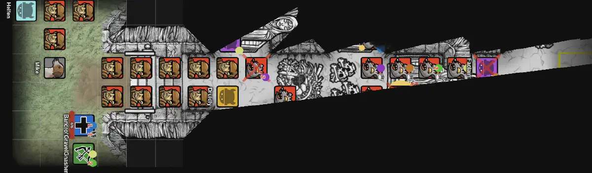 Somehow Druidly dodged the bandit’s blows long enough to put half a dozen of them into a magical sleep. Those left promptly returned the favor and he fell unconscious. While the bandit leader shouted, rats crept up from behind. He screamed as they swarmed him but lived long enough to flee toward the stairs, ordering his followers to keep Druidly inside the barrow.