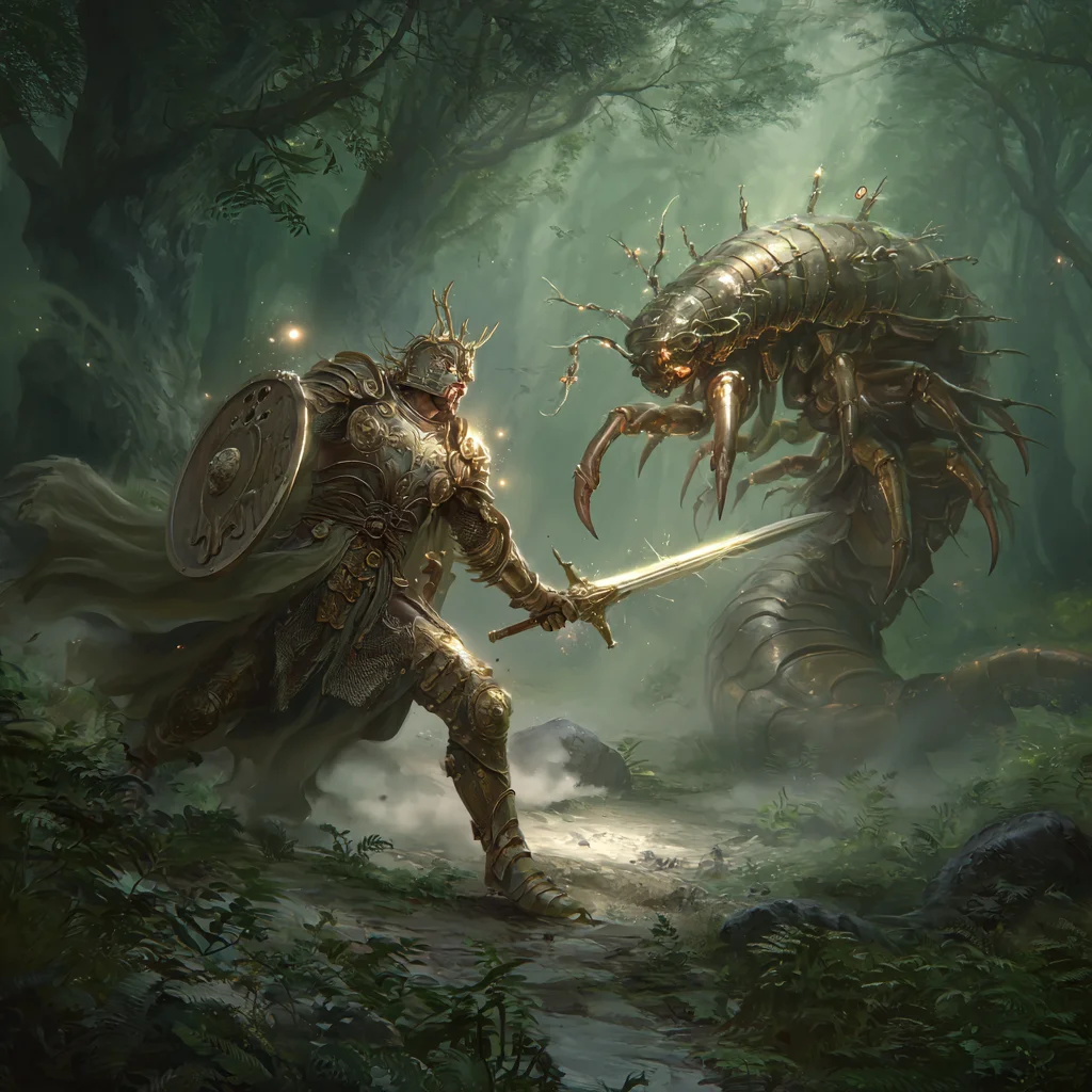 Kafeelia, the dwarven fighter, roared with battle-fury and drove her spear through the nearest centipede. She lifted the writhing corpse high, her eyes blazing with the primal joy of her first true kill. In that moment, she felt the warrior’s fire ignite within her soul.